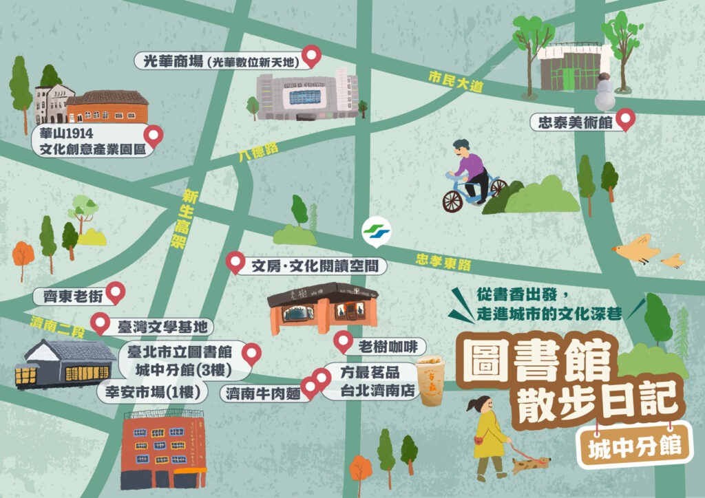 「家政」是臺北市立圖書館城中分館的館藏特色,你可以把它理解為涵蓋食衣住行育樂,將生活過得更好的小技巧和日常實踐。讓我們從城中分館出發,沿著市場、文學基地與商場一路散步,觀察那些安靜卻必要的角落,如何陪伴我們吃穿用度,怎麼安頓自己——日日實踐卻常忽略的「城市家政學」。