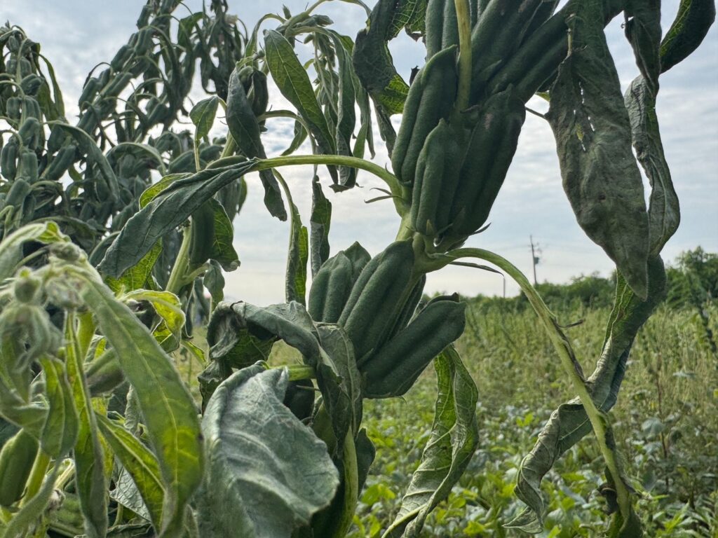 芝麻屬於旱作,澆灌的水量必須節制,過多的水反倒容易造成災害,如真菌造成的烏腳病,將導致農作物自根莖部壞死。為了防止真菌或黴菌傳染,種過芝麻的土地不能連作,必須休息二至三年,常見與水稻、蕎麥或太陽花輪作,等到花季時還能帶動一波觀光人潮。但這樣的耕作節奏,也意味著產量無法快速擴張。